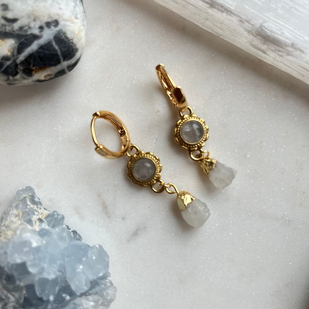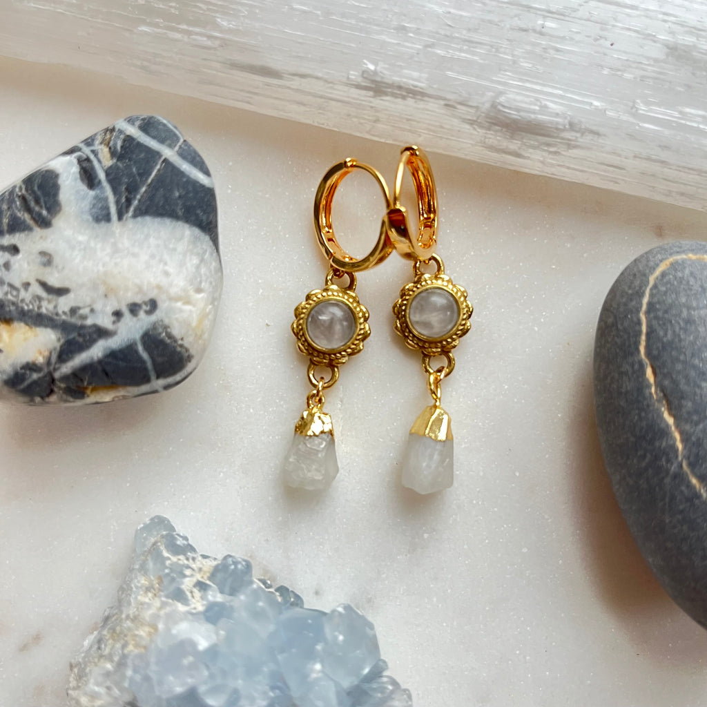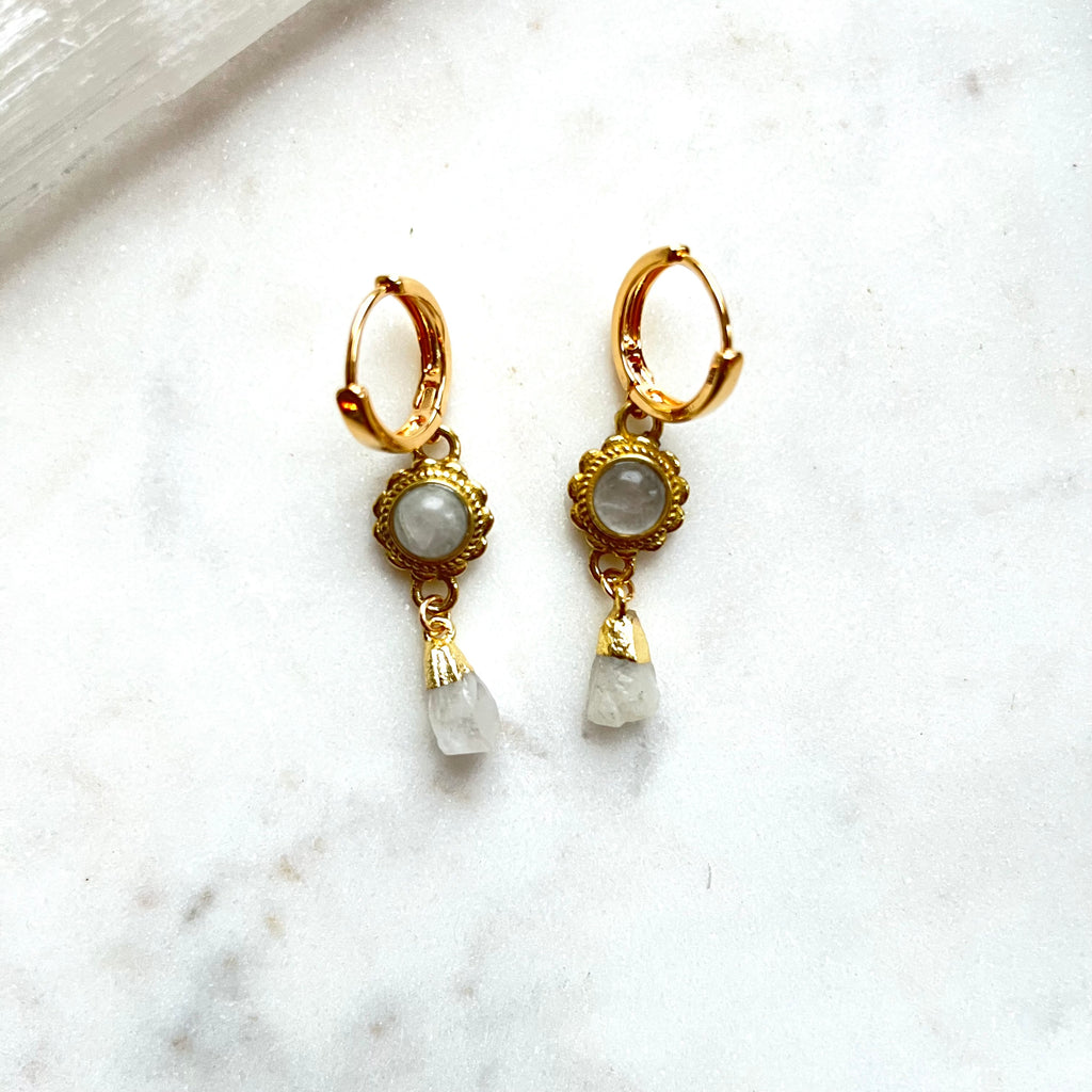 Moonflower~Moonstone~Huggie Earrings