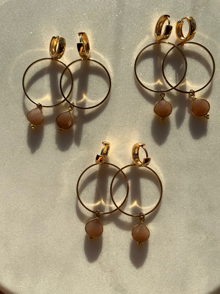 Faceted peach Moonstone crystal on 14k gold filled huggies!