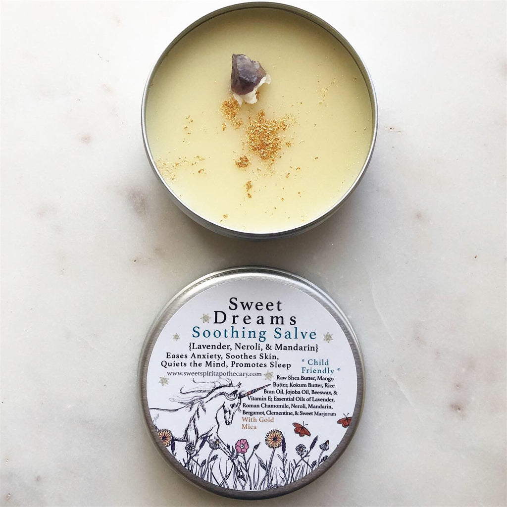 Drift off into dreamland with this magical soothing salve. This child-friendly salve is filled with skin-nourishing, natural butters that work together to heal extremely dry skin while providing relief from itchiness and eczema. A carefully selected blend of essential oils creates a synergy of calming scents, which soothes anxiety, andΒ quiets the mind. Rest easy. Be restored.