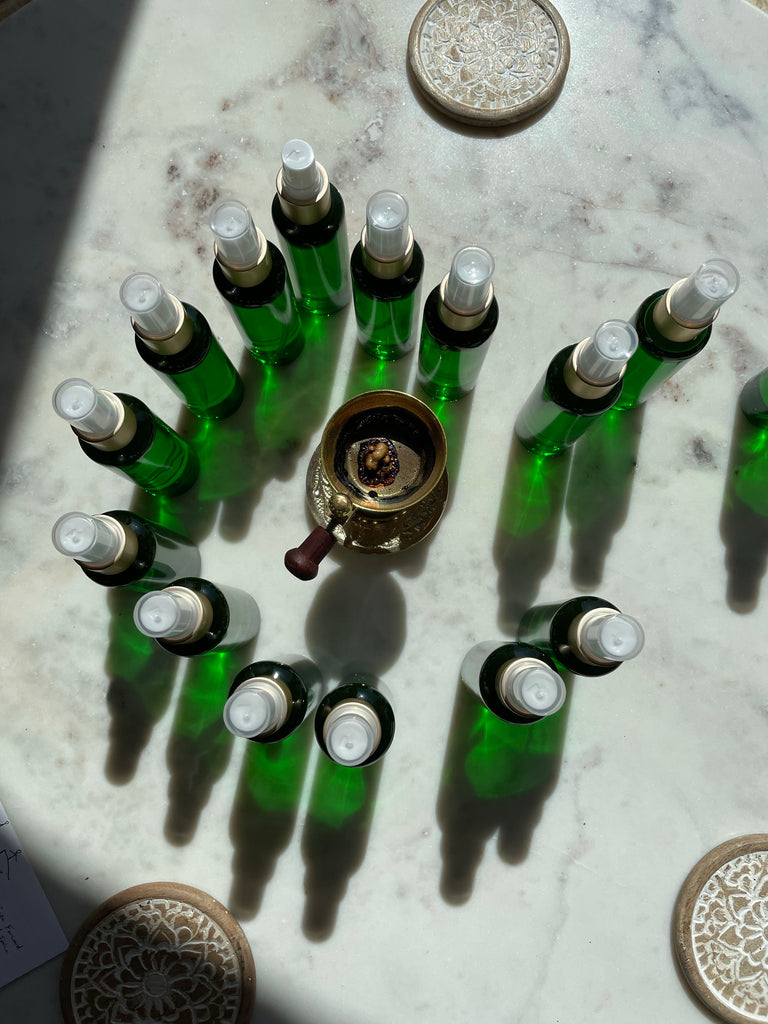 This spray contains 4 varieties of cedar extracted from both leaf and wood and that come from around the world. I’ve been collecting cedar oils and each one is soooo unique and special! These oils sit in a base of sacred Sweetgrass hydrosol and a touch of sweet VERNAL grass absolute has been added to enhance the blend.
