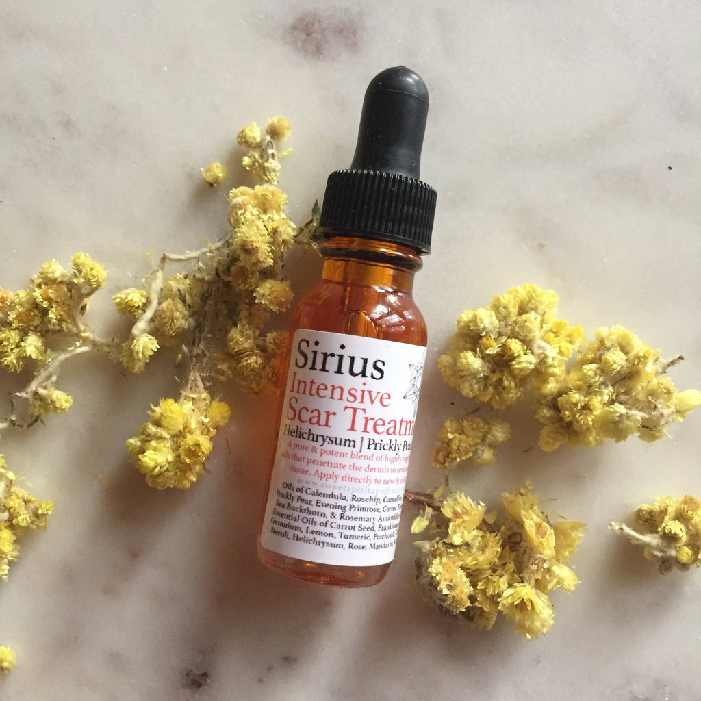 A potent all natural scar serum that works! Made with frankincense, sea buckthorn, helichrysum, pracaxi, calendula, myrrh, carrot seed, Rose geranium, St. John’s wort,  Tamanu and more!!! Please note that this is meant for scars on the body and not on for the face. If you have scars or acne scars on the face, I highly recommend the Immortelle Royal Radiance Serum.. and stick with it!