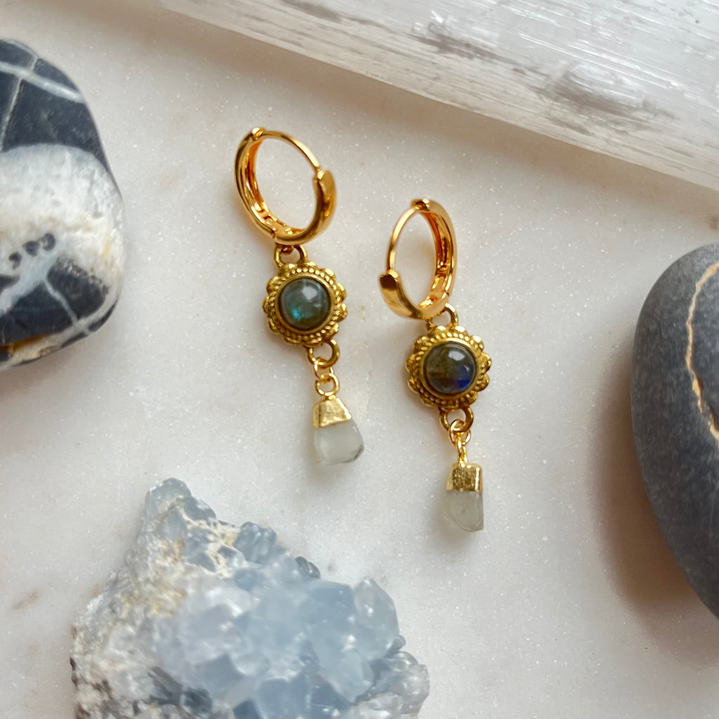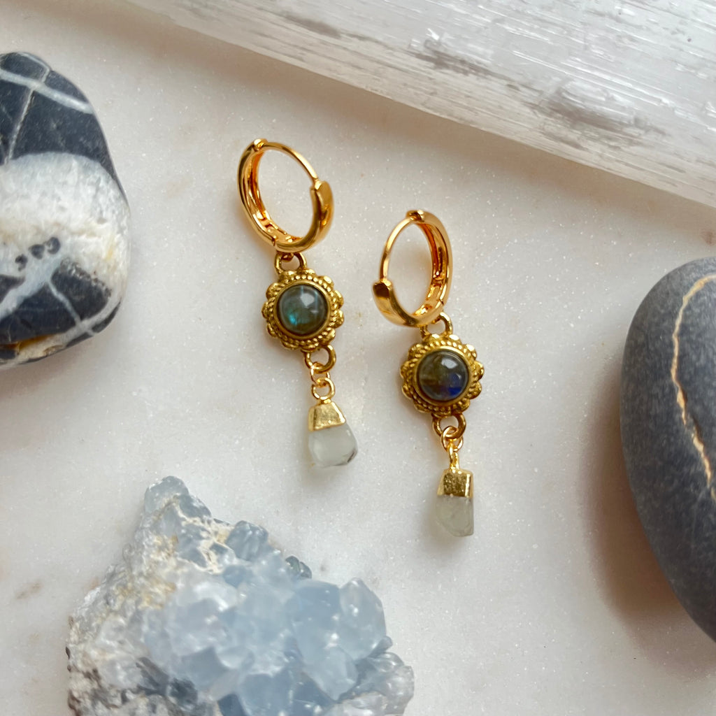 Aurora Bloom~Labradorite and Aquamarine~Huggie Earrings