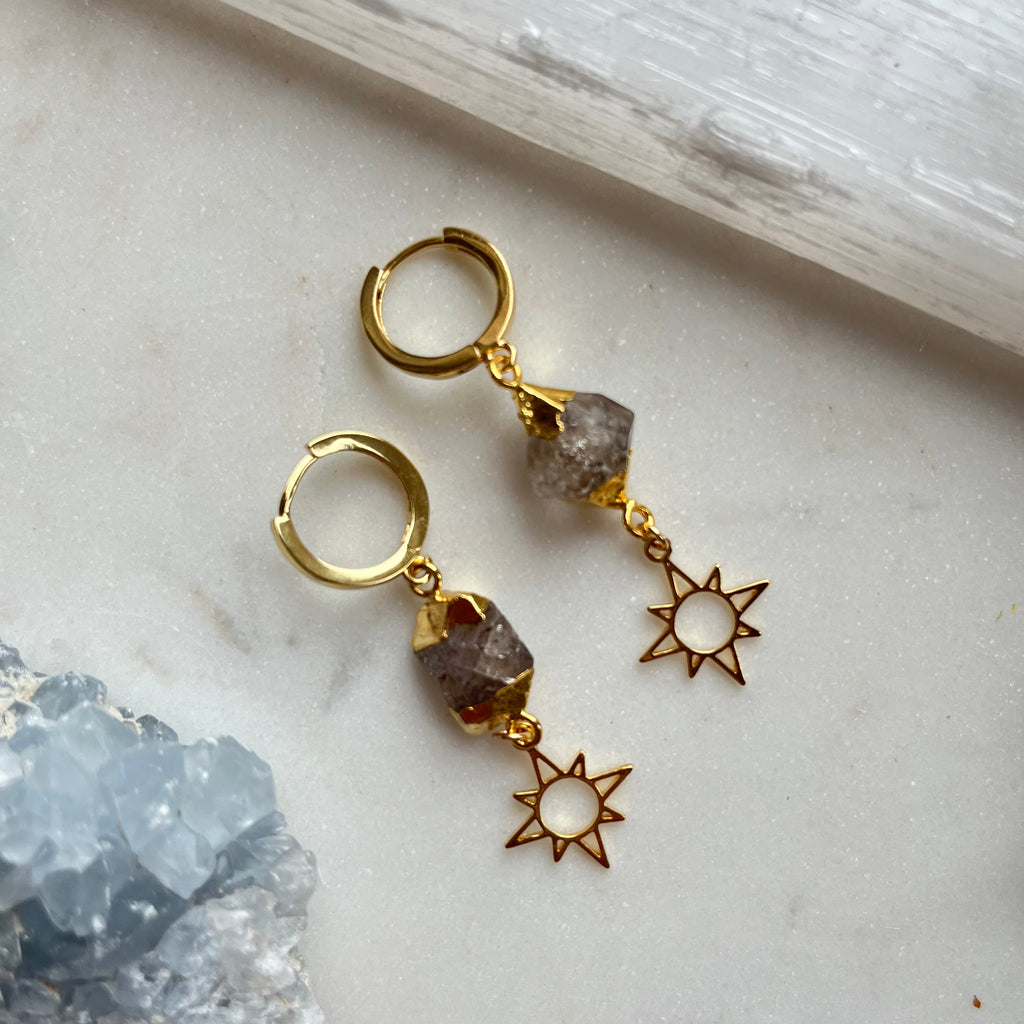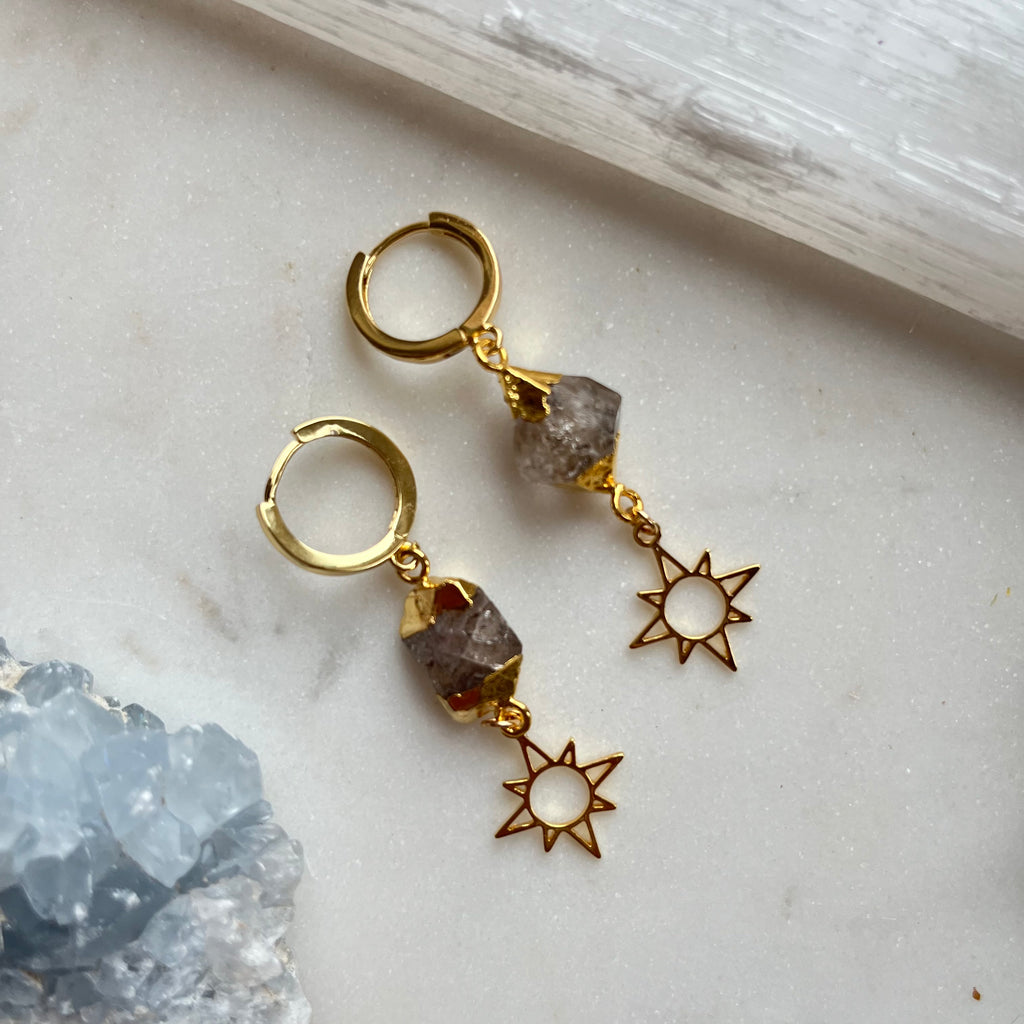 Step into a realm of enchantment with our 'Diamond Dreamweaver' Huggies featuring Herkimer Diamonds, elegantly crafted on gold-filled hoops. These exquisite earrings embody a fusion of sophistication and the unique spiritual properties of Herkimer Diamonds.🥰✨