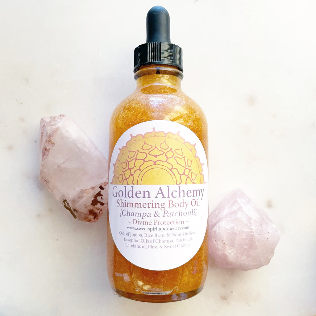Golden Alchemy Shimmering Body Oil ~ with champa, patchouli, and golden amber, with notes of sweet orange and pine =DIVINE ✨✨✨